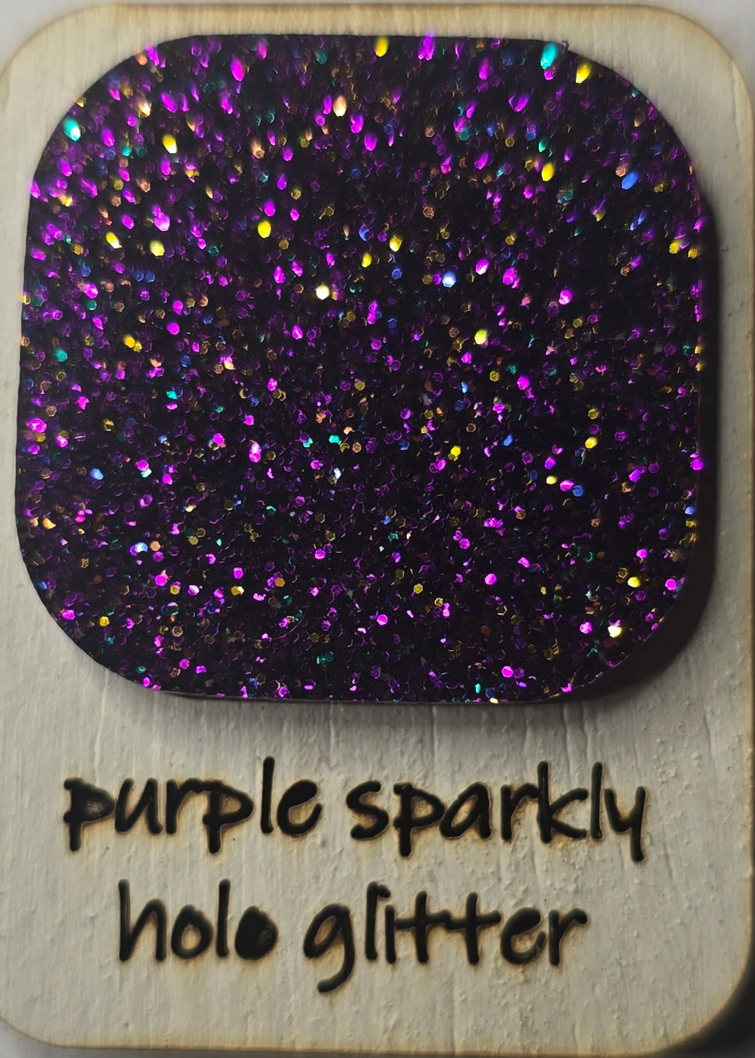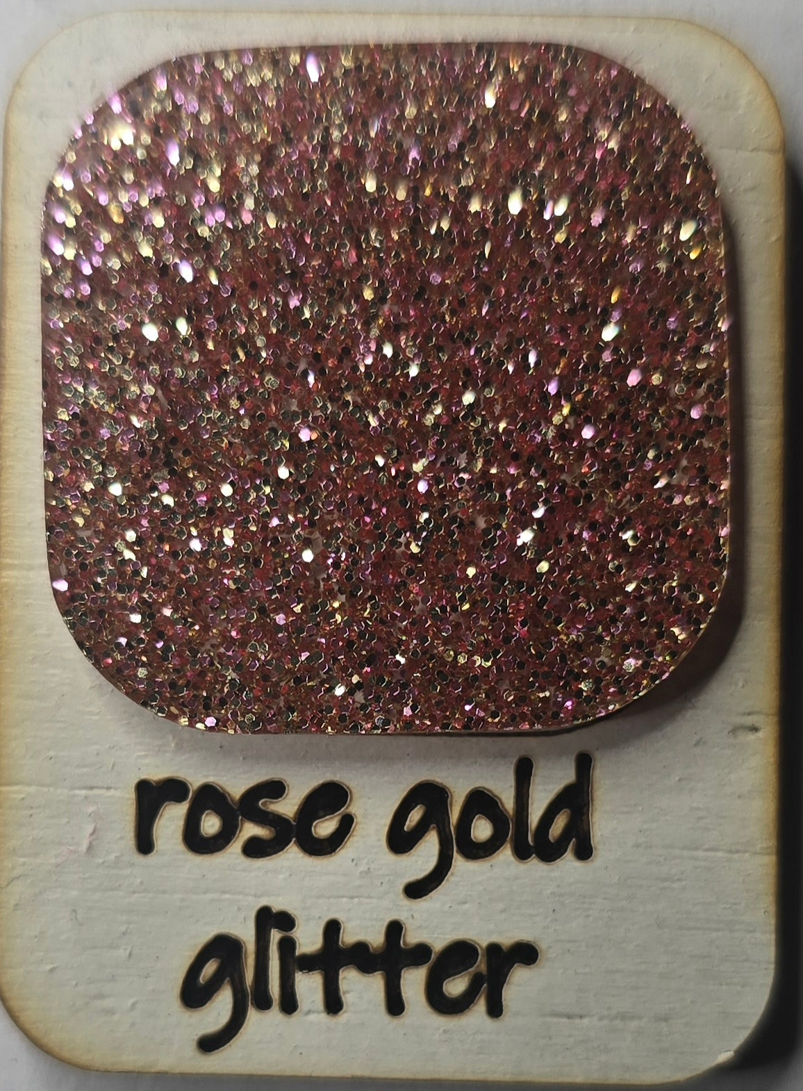 A glitter acrylic carrot tag customized with a name for Easter baskets.